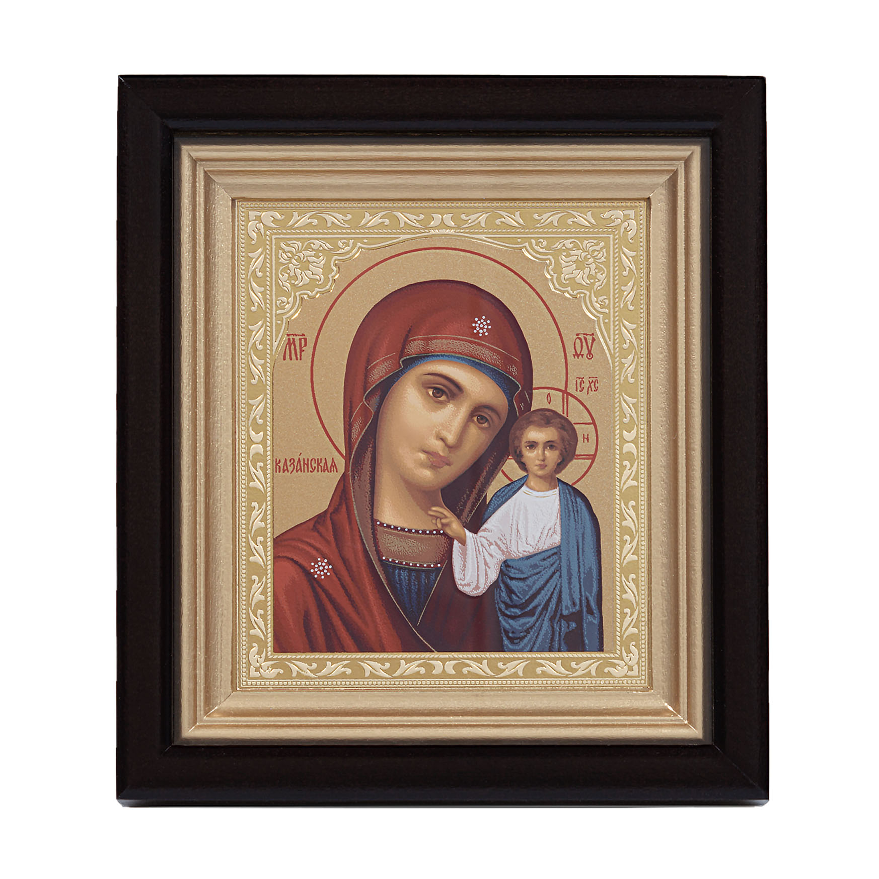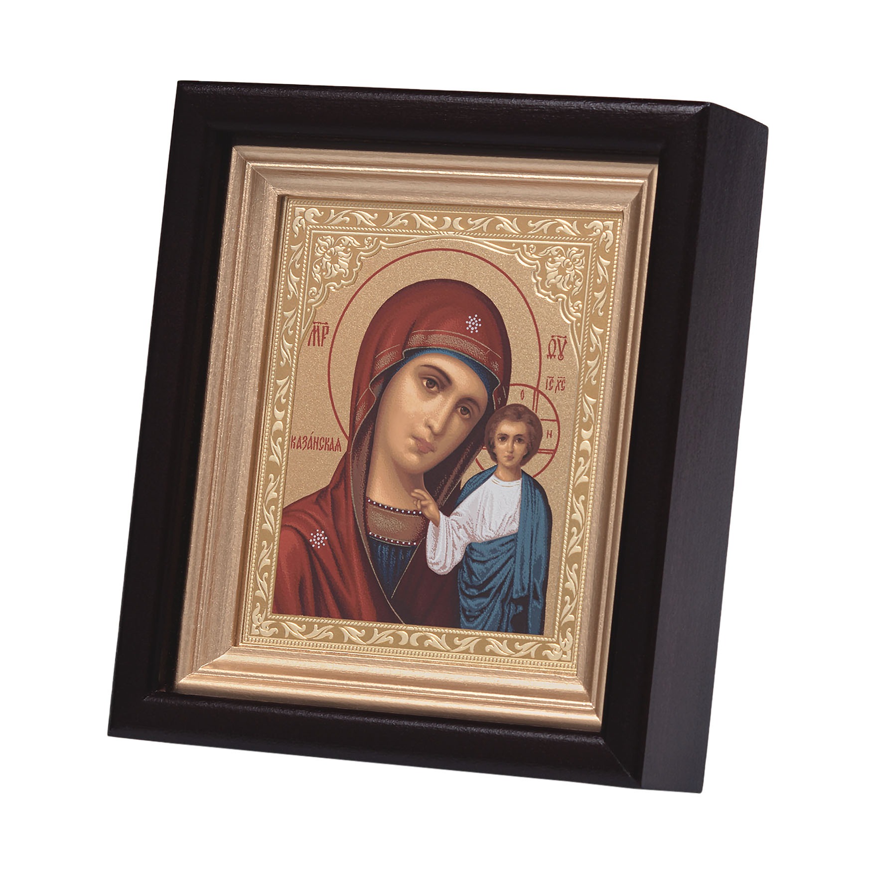 Икона в киоте 11х13 сложный, темпера, тиснение Казанская БМ 1