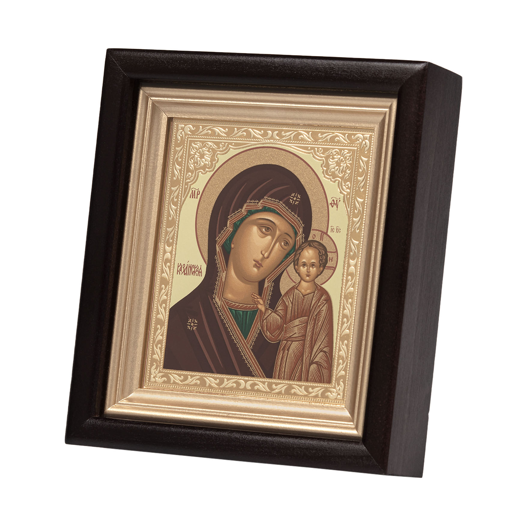 Икона в киоте 11х13 сложный, темпера, тиснение Казанская БМ