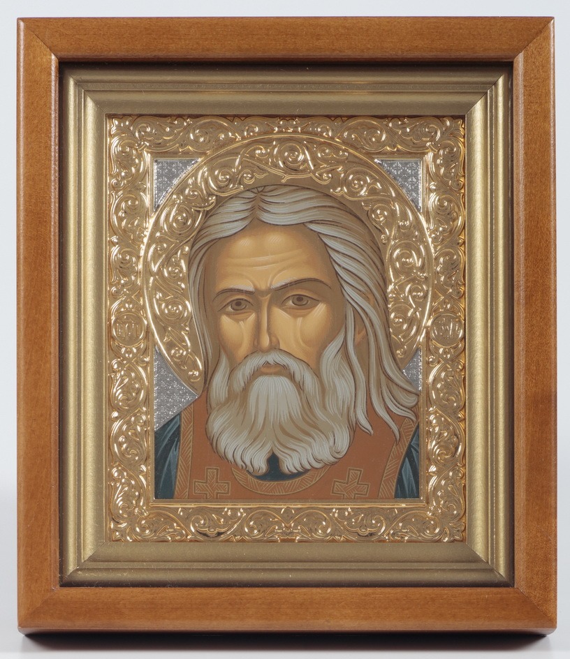 Киот-липа, аэрозольный подрамник, риза-латунь(никель,золочение), стекло, изображение-шелкография