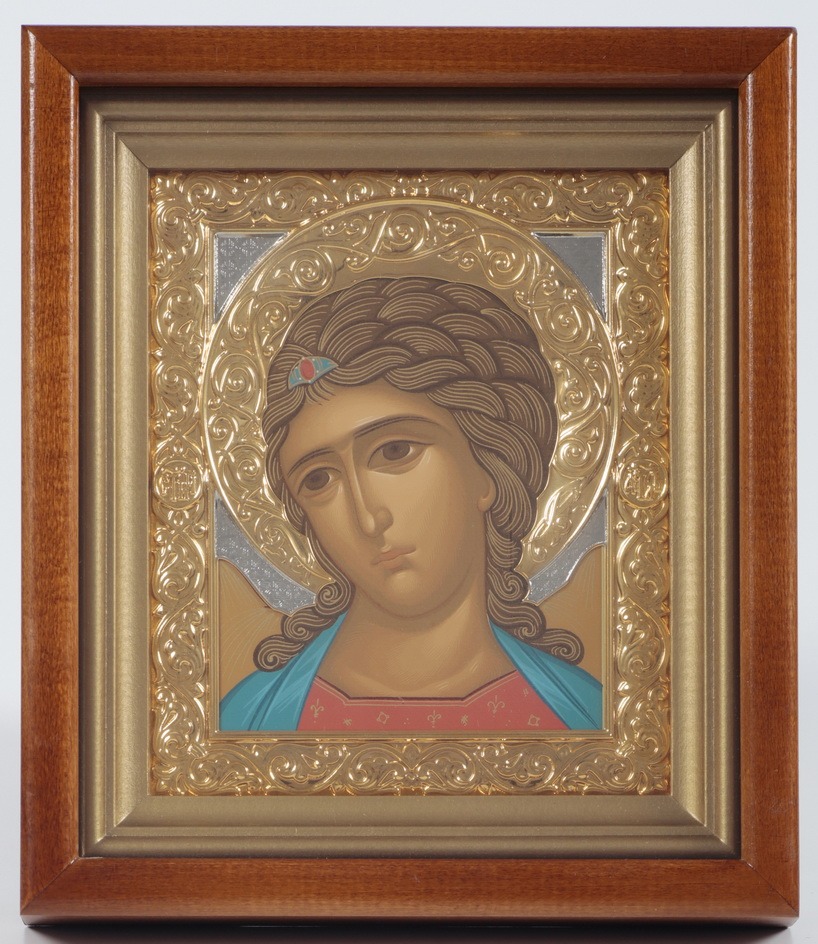 Икона в киоте 12х14 сложный №2 темпера, никель, золочение Ангел-Златые власа