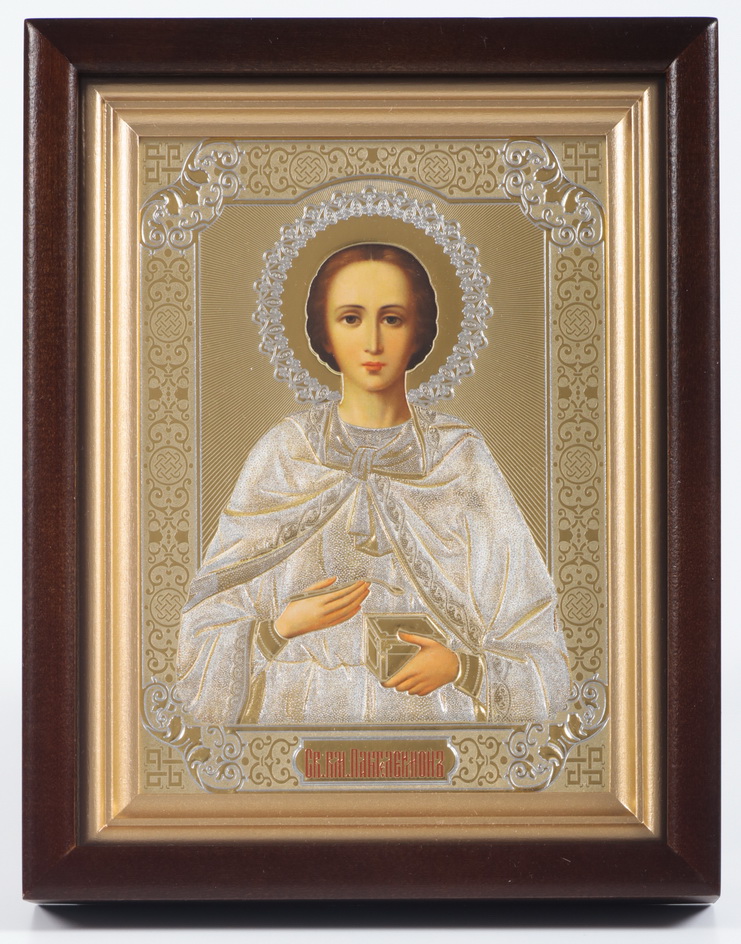 Икона в киоте 13х18 сложный, конгрев Пантелеимон