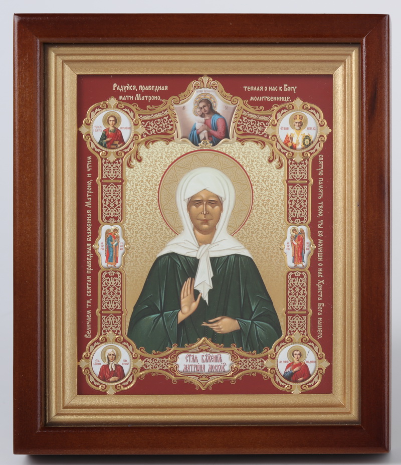 Икона в киоте 13х18 сложный, конгрев, плёнка Матрона с клеймами