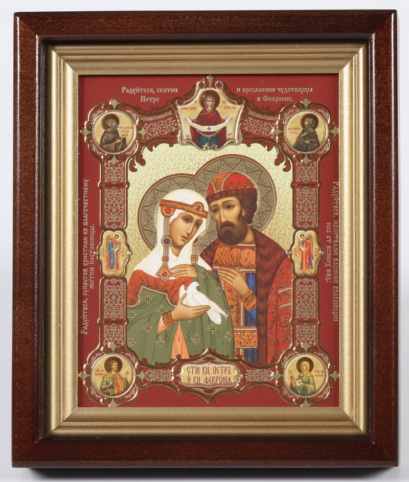 Икона в киоте 13х18 сложный, конгрев, плёнка Петр и Феврония №7 с клеймами