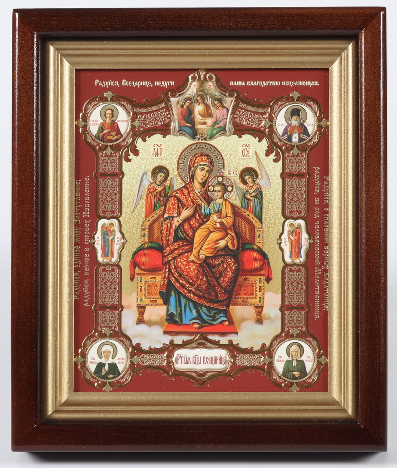 Икона в киоте 13х18 сложный, конгрев, плёнка Всецарица №2 с клеймами