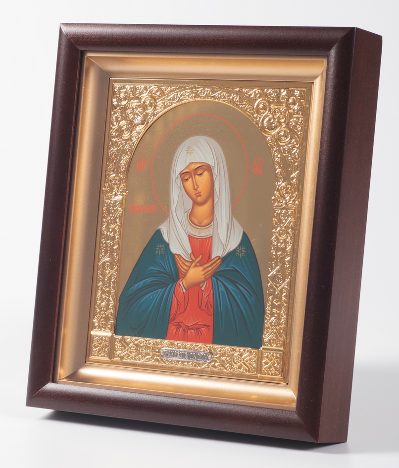 Икона в киоте 15х19 сложный, темпера №8, рамка фигурная, золочёная Умиление