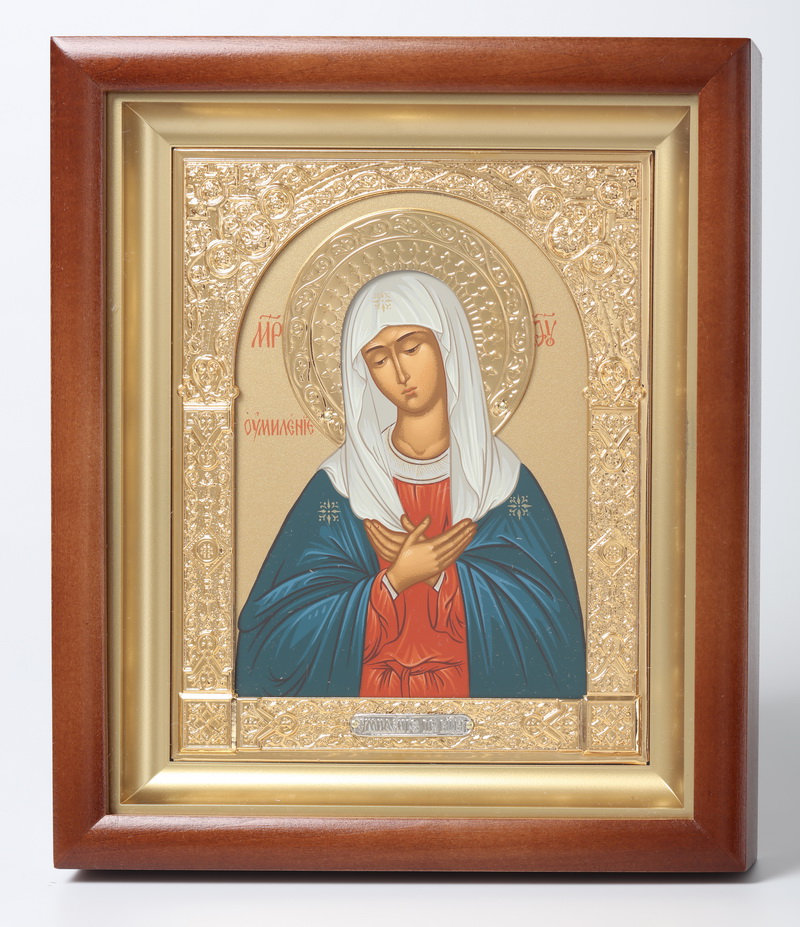 Икона в киоте 15х19 сложный, темпера, венчик, рамка фигурная, золочёная Умиление (золотой фон)