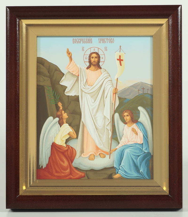 Икона в киоте 18х22 сложный, темпера №9, багетный подрамник Воскресение Христово 1