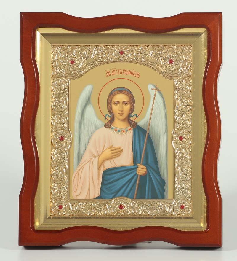 Икона в киоте 18х24 фигурный №4 темпера, рамка фигурная, золочёная, багетный подрамник Ангел Хранитель 1