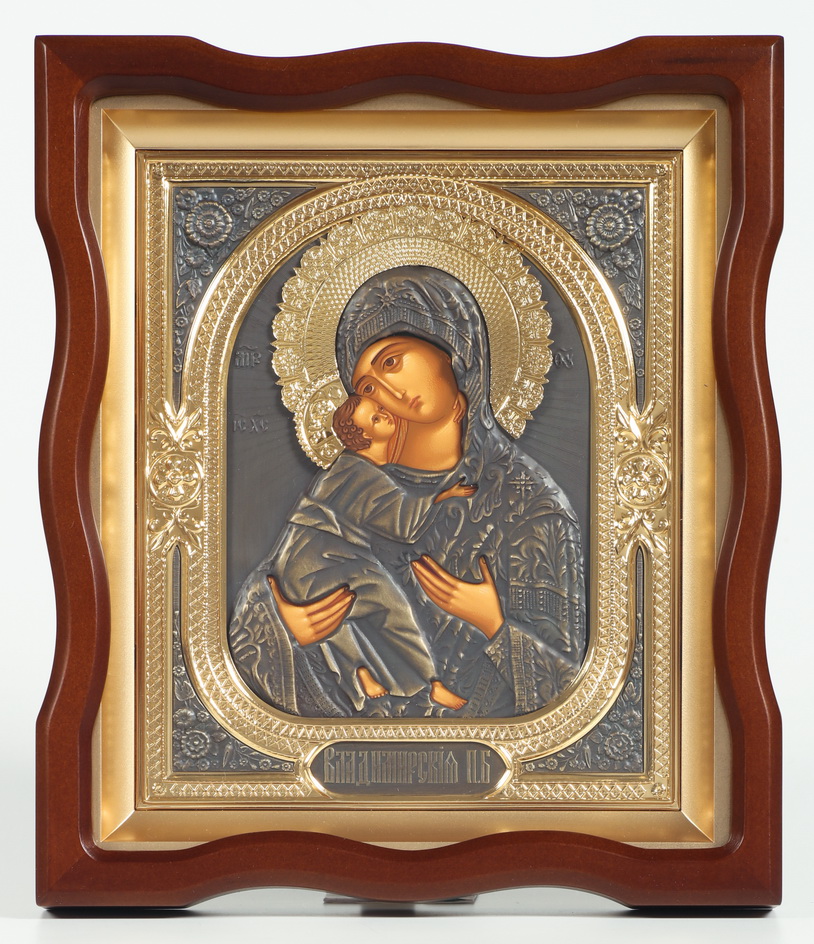 Икона в киоте 18х24 фигурный №4 темпера, риза комбинированная (зол+патин) Владимирская БМ
