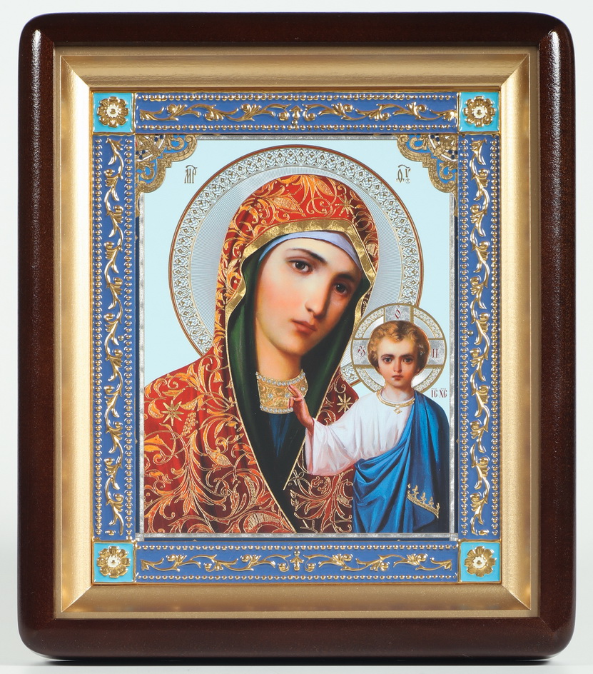 Икона в киоте 18х24 фигурный, двойное тиснение, рамка золочёная, эмаль Казанская БМ 22