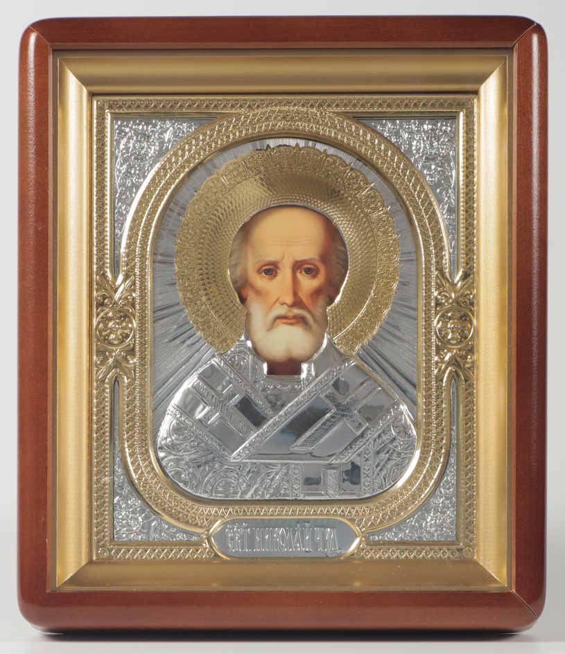 Икона в киоте 18х24 фигурный, фото, риза объёмная №1 Николай Чудотворец