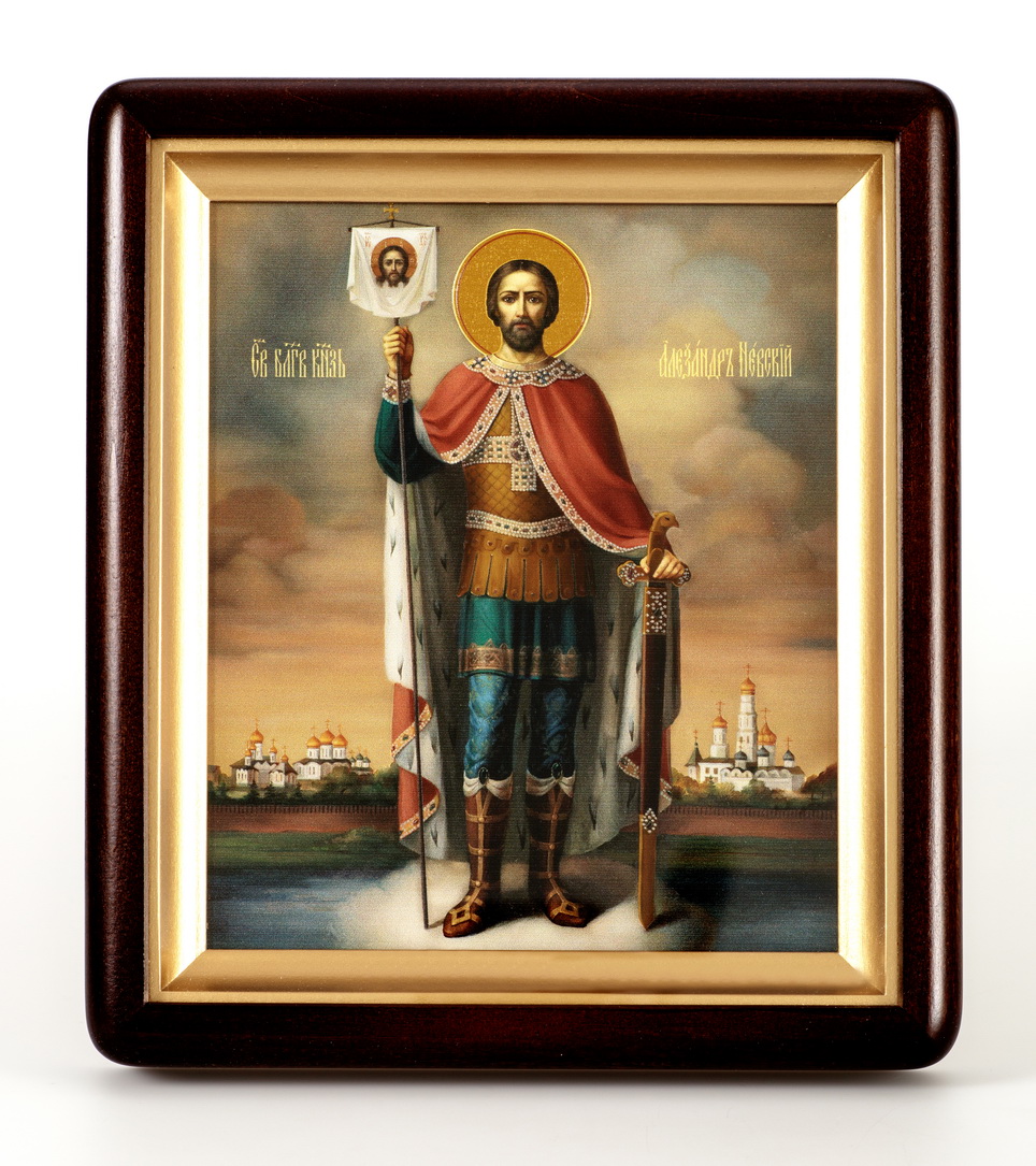 Икона в киоте 18х24 фигурный, изображение на пластике Александр Невский рост.