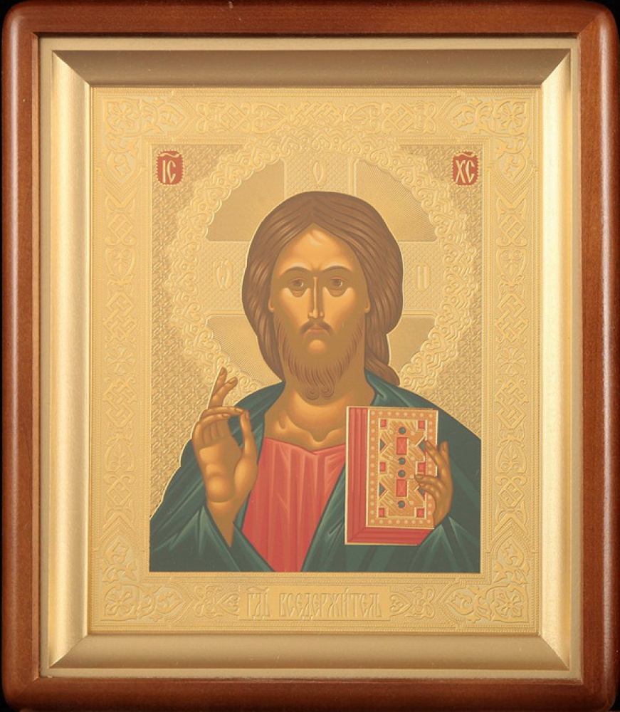 Икона в киоте 18х24 фигурный, темпера №5 Спаситель (желтый фон)