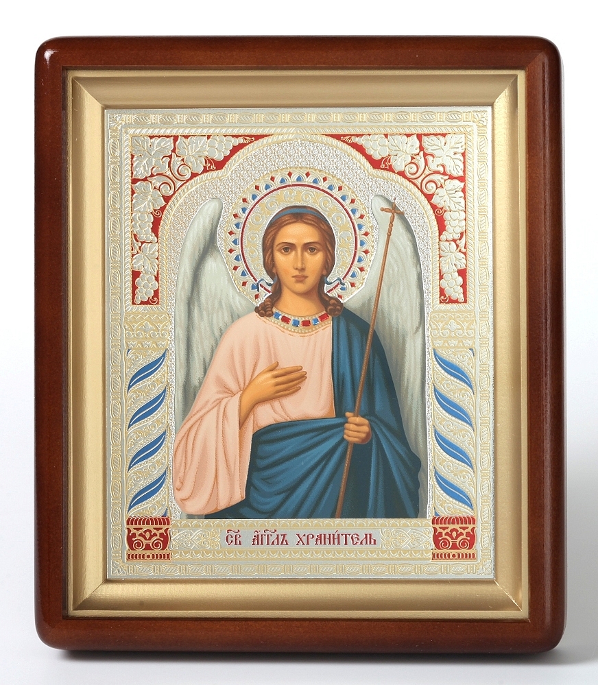 Икона в киоте 18х24 фигурный, темпера №6 Ангел-Хранитель 1 (белый фон)
