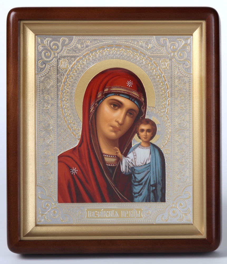 Икона в киоте 18х24 фигурный, темпера №6 Казанская БМ 1 (белый фон)