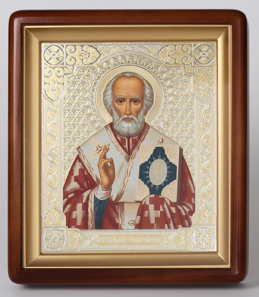 Икона в киоте 18х24 фигурный, темпера №6 Николай Чудотворец 1 (белый фон)