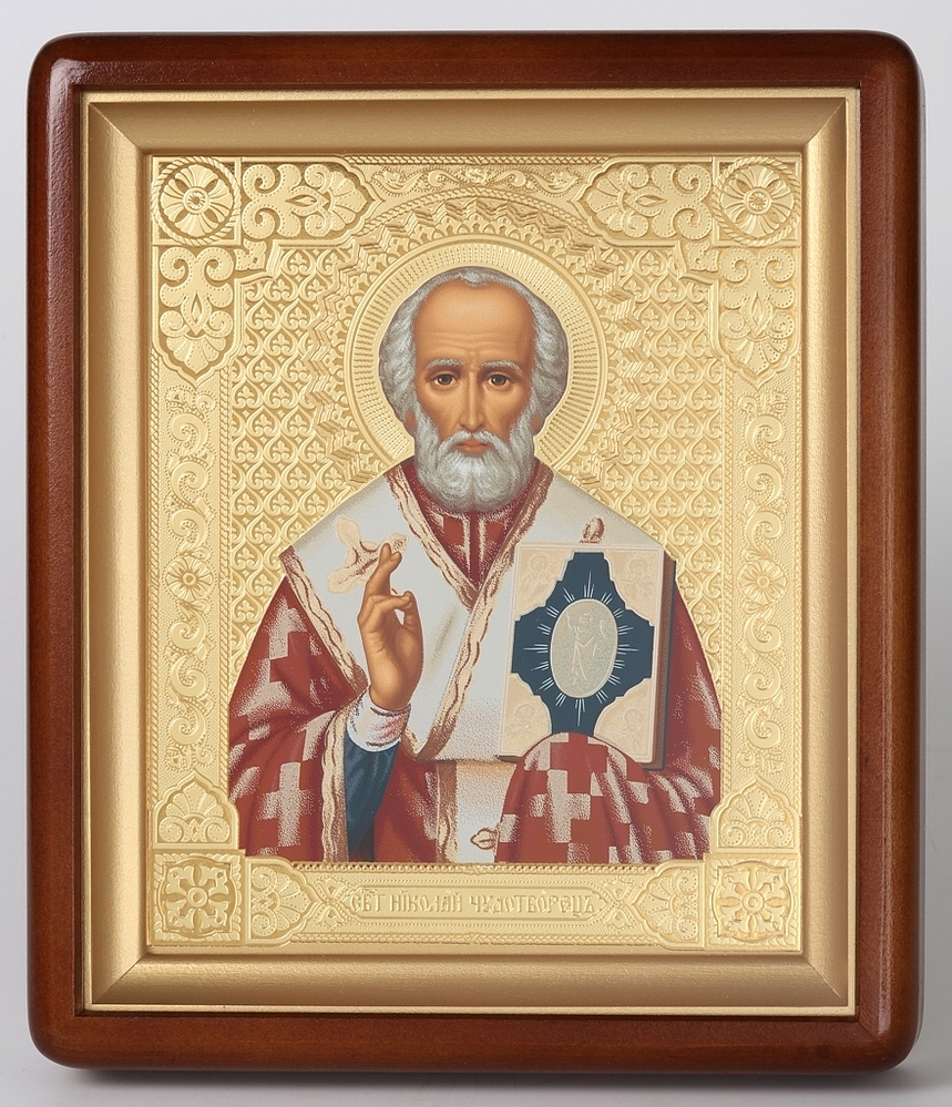 Икона в киоте 18х24 фигурный, темпера №6 Николай Чудотворец 1 (желтый фон)