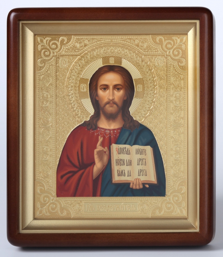 Икона в киоте 18х24 фигурный, темпера №6 Спаситель 1 (желтый фон)
