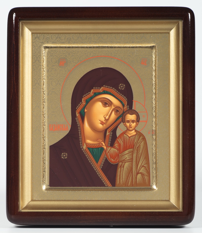 Икона в киоте 18х24 фигурный, темпера №8, ковчег Казанская БМ