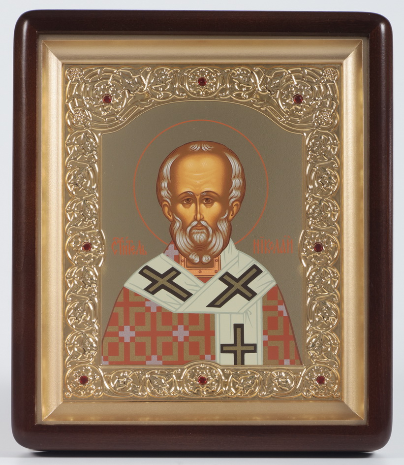 Икона в киоте 18х24 фигурный, темпера №8, рамка фигурная, золочёная Николай Чудотворец