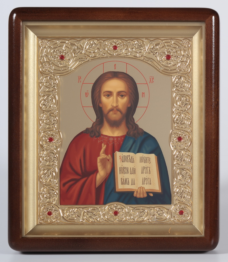 Икона в киоте 18х24 фигурный, темпера №8, рамка фигурная, золочёная Спаситель 1