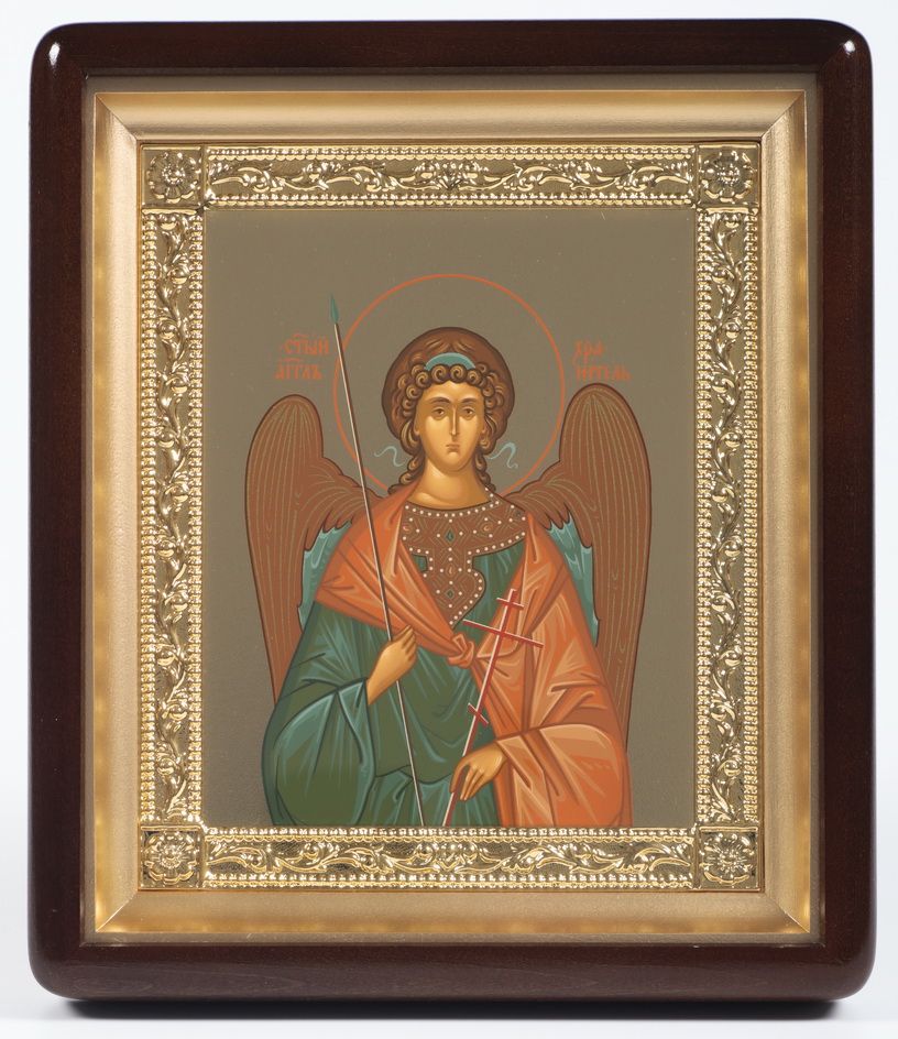 Икона в киоте 18х24 фигурный, темпера №8, рамка золочёная Ангел-Хранитель
