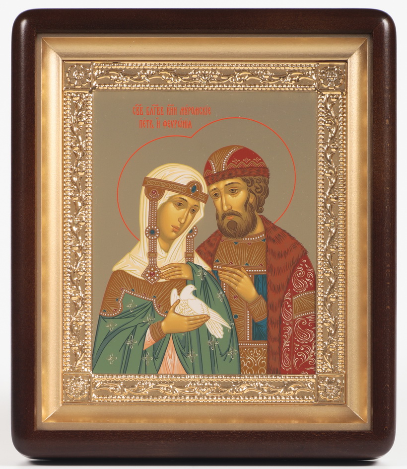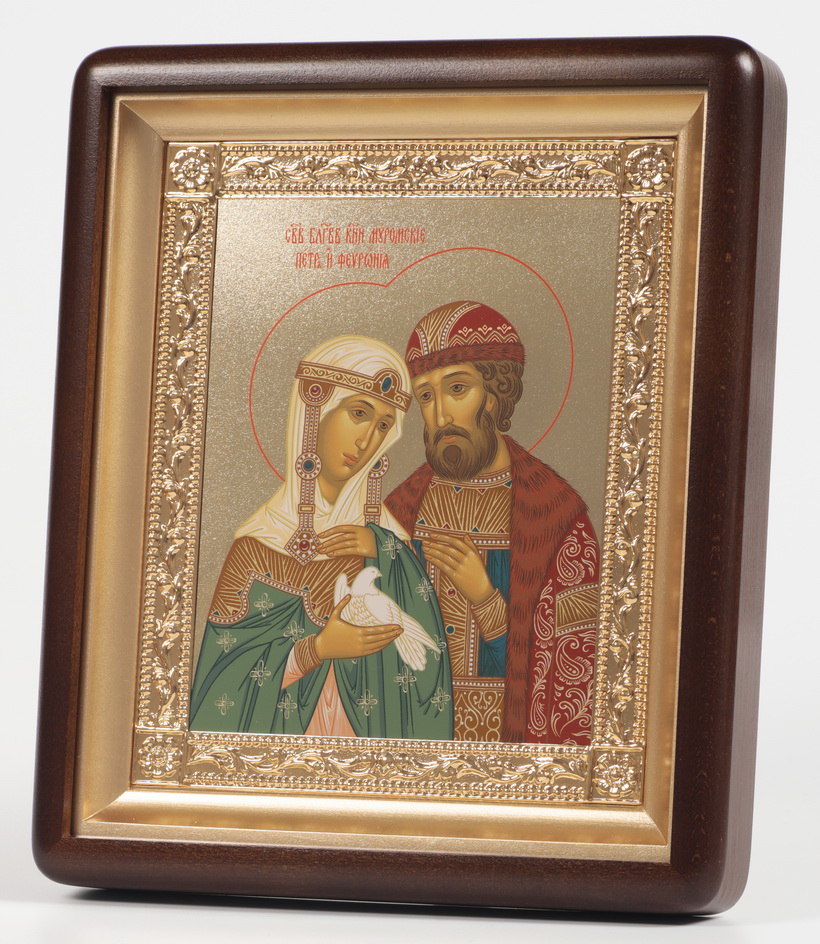 Икона в киоте 18х24 фигурный, темпера №8, рамка золочёная Петр и Феврония 2
