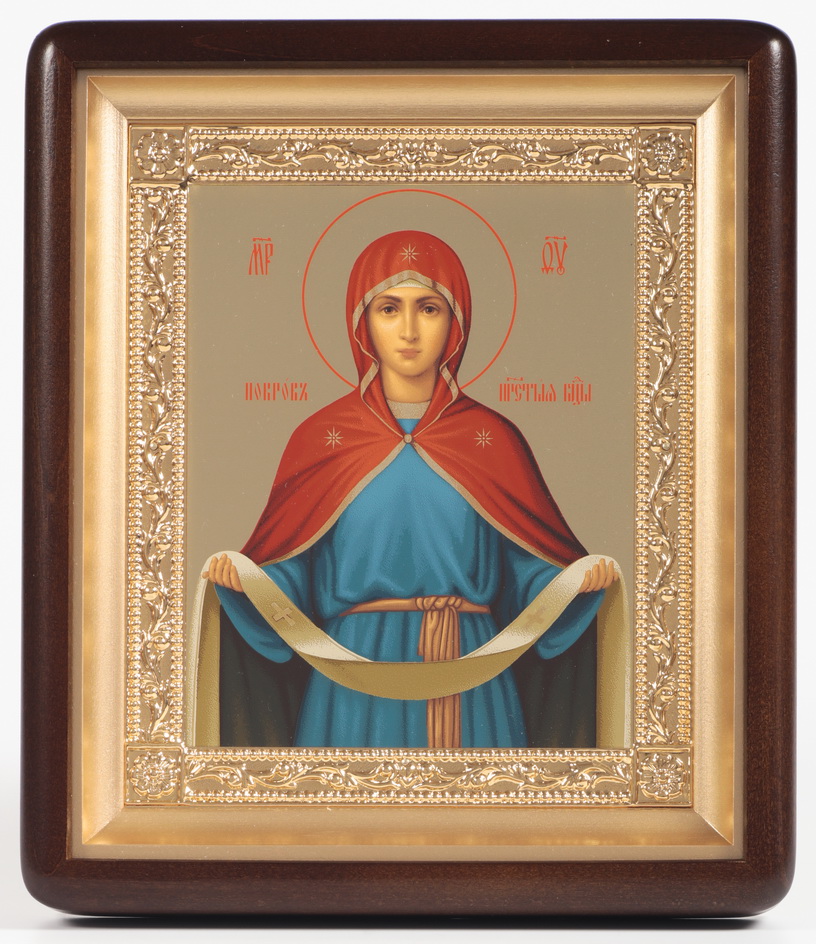Икона в киоте 18х24 фигурный, темпера №8, рамка золочёная Покров БМ 1