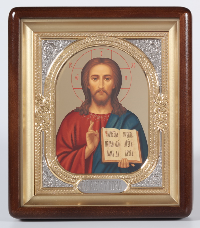 Икона в киоте 18х24 фигурный, темпера №8, риза-рамка объемная, открытая, золочёная, никелирование