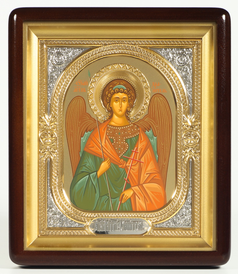Икона в киоте 18х24 фигурный, темпера №8, венчик, риза-рамка объемная, открытая, золочени Ангел-Хранитель