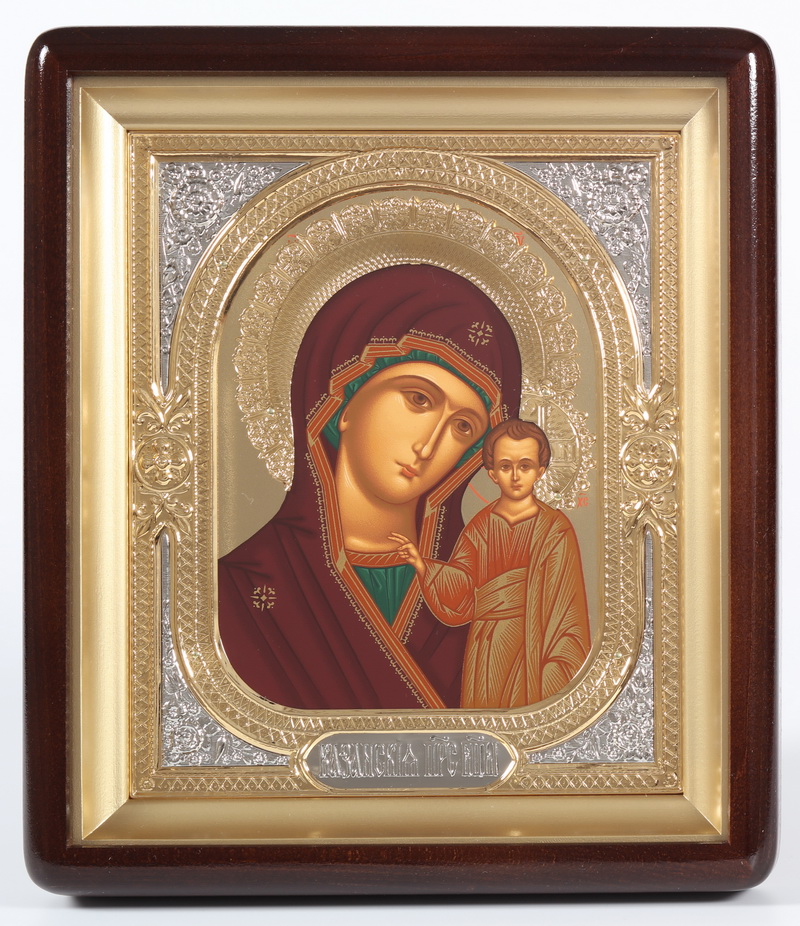 Икона в киоте 18х24 фигурный, темпера №8, венчик, риза-рамка объемная, открытая, золочени Казанская БМ