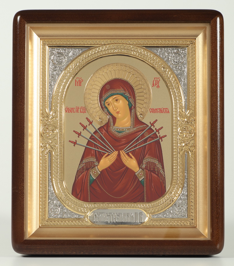 Икона в киоте 18х24 фигурный, темпера №8, венчик, риза-рамка объемная, открытая, золочени Семистрельная БМ