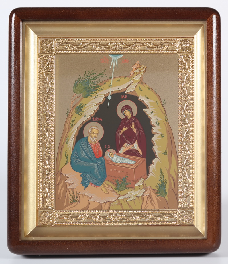 Икона в киоте 18х24 фигурный, темпера №9, рамка золочёная