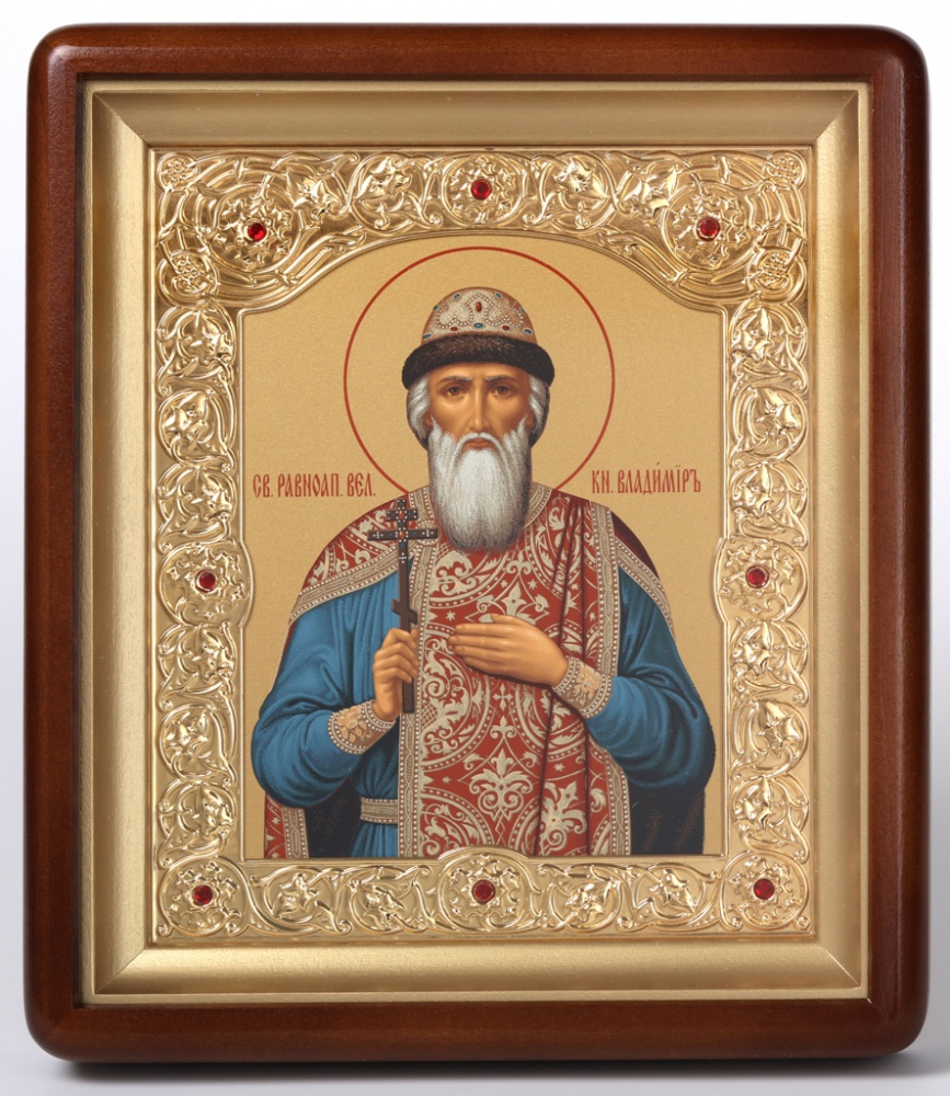 Икона в киоте 18х24 фигурный, темпера, рамка фигурная, золочёная Владимир равн. князь Киевск. 1