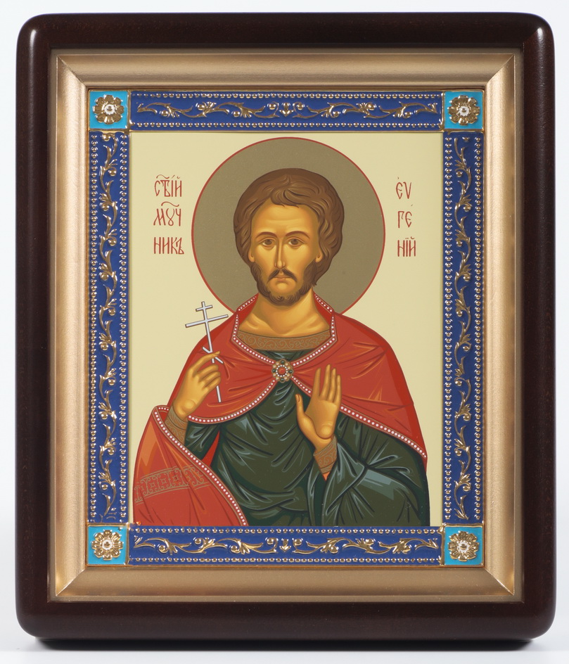 Икона в киоте 18х24 фигурный, темпера, рамка золочёная, эмаль Евгений