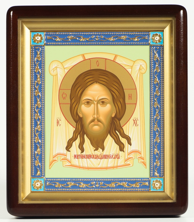 Икона в киоте 18х24 фигурный, темпера, рамка золочёная, эмаль Спас Нерукотворный