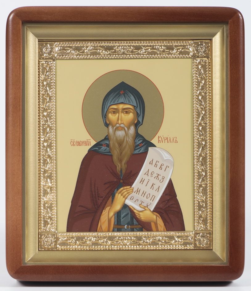 Икона в киоте 18х24 фигурный, темпера, рамка золочёная Кирилл