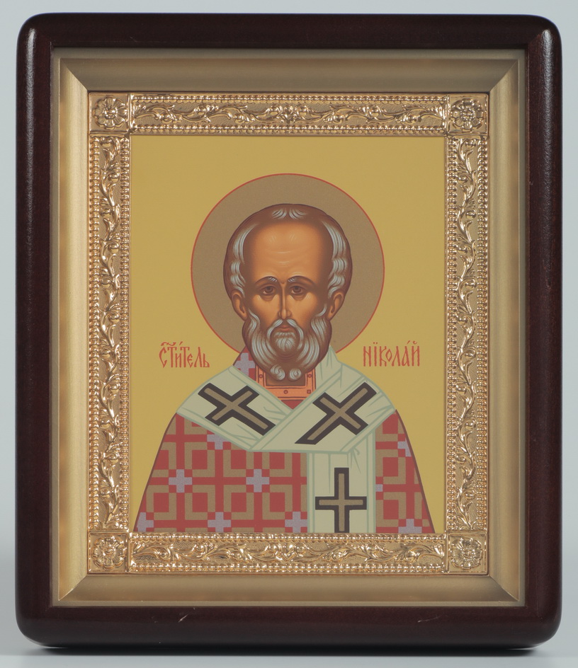 Икона в киоте 18х24 фигурный, темпера, рамка золочёная Николай Чудотворец