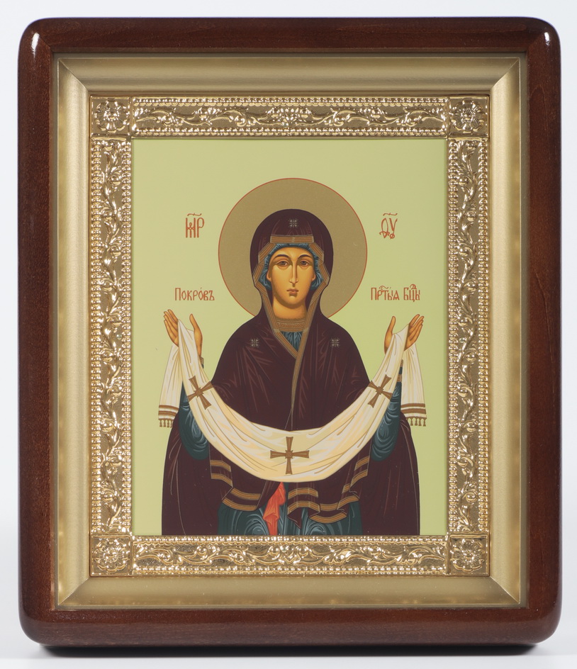 Икона в киоте 18х24 фигурный, темпера, рамка золочёная Покров
