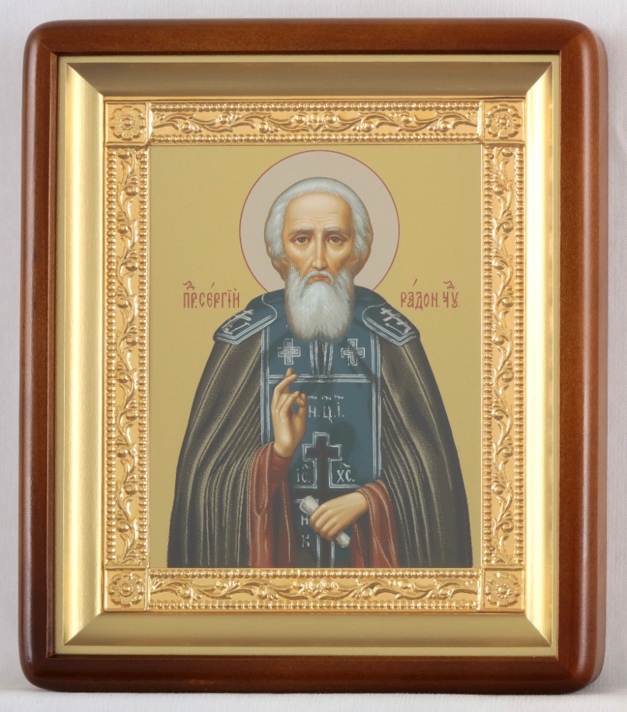 Икона в киоте 18х24 фигурный, темпера, рамка золочёная Сергий Радонежский 1