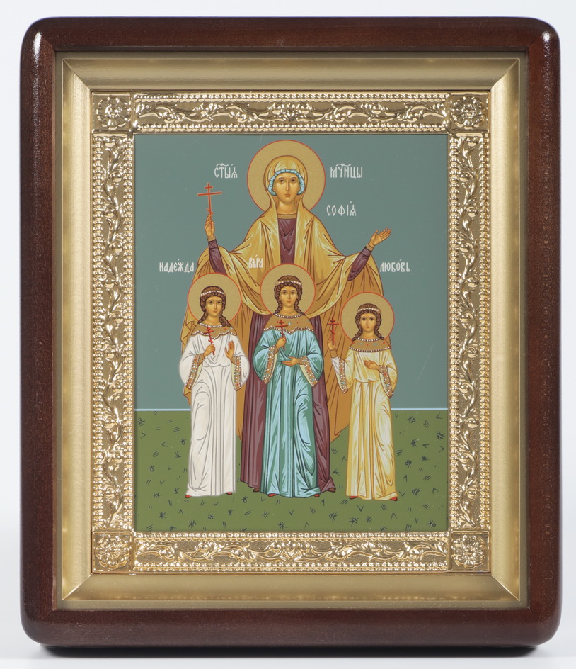Икона в киоте 18х24 фигурный, темпера, рамка золочёная Вера, Надежда, Любовь
