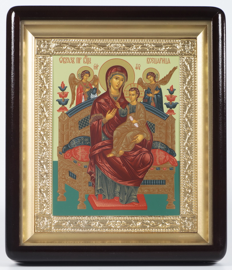 Икона в киоте 18х24 фигурный, темпера, рамка золочёная Всецарица