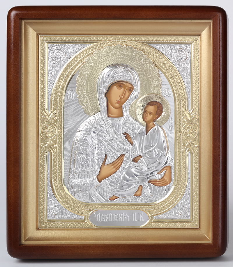 Икона в киоте 18х24 фигурный, темпера, риза объёмная №1 Тихвинская БМ
