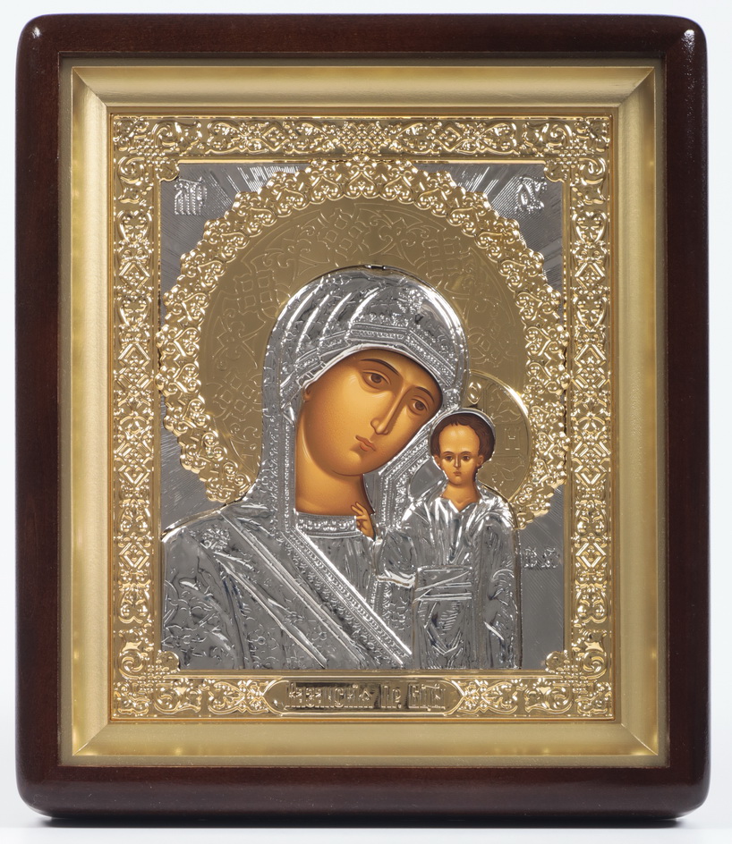 Киот-липа, аэрозольный подрамник, риза-латунь(никель,золочение), стекло, изображение-шелкография