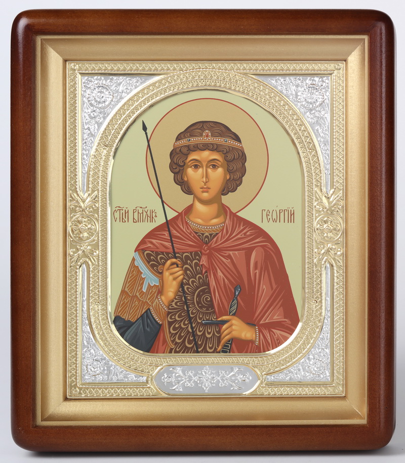 Икона в киоте 18х24 фигурный, темпера, риза-рамка №1 Георгий Победоносец