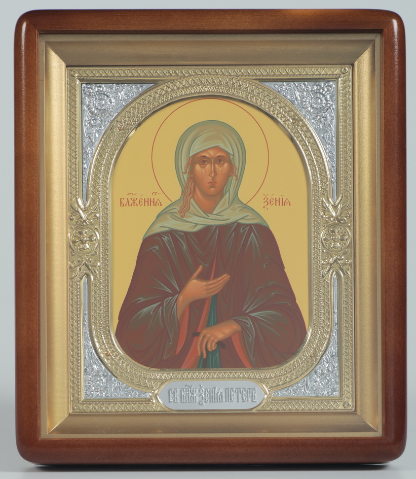 Икона в киоте 18х24 фигурный, темпера, риза-рамка №1 Ксения Петербургская