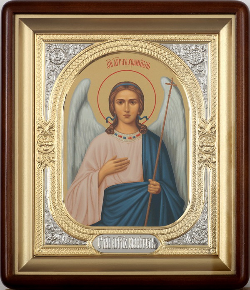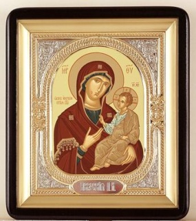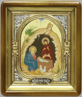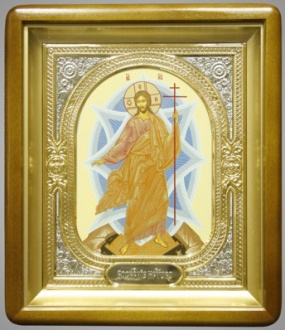 Икона в киоте 18х24 фигурный, темпера, риза-рамка объемная, открытая, золочёная, никелирование