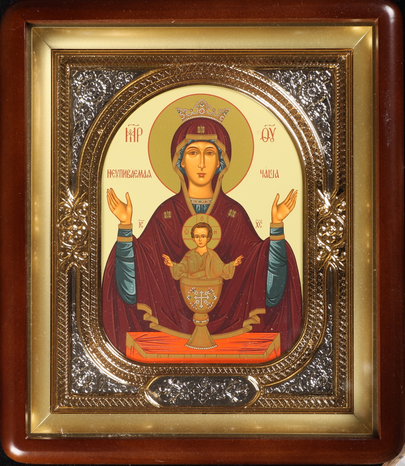 Икона в киоте 18х24 фигурный, темпера, риза-рамка объемная, открытая, золочёная, никелирование Неупиваемая Чаша