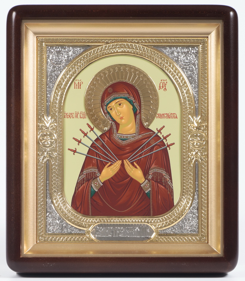 Икона в киоте 18х24 фигурный, темпера, венчик, риза-рамка объемная, открытая, золочение Семистрельная БМ