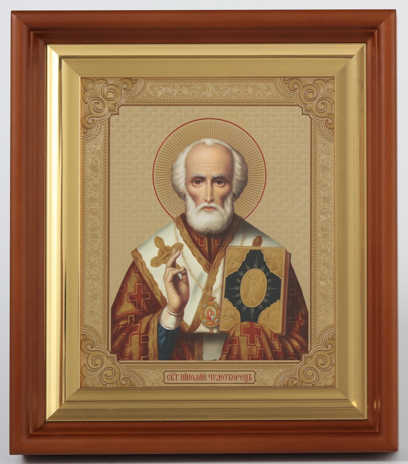 Икона в киоте 18х24 изображение на пластике, багетный подрамник Николай Чудотворец